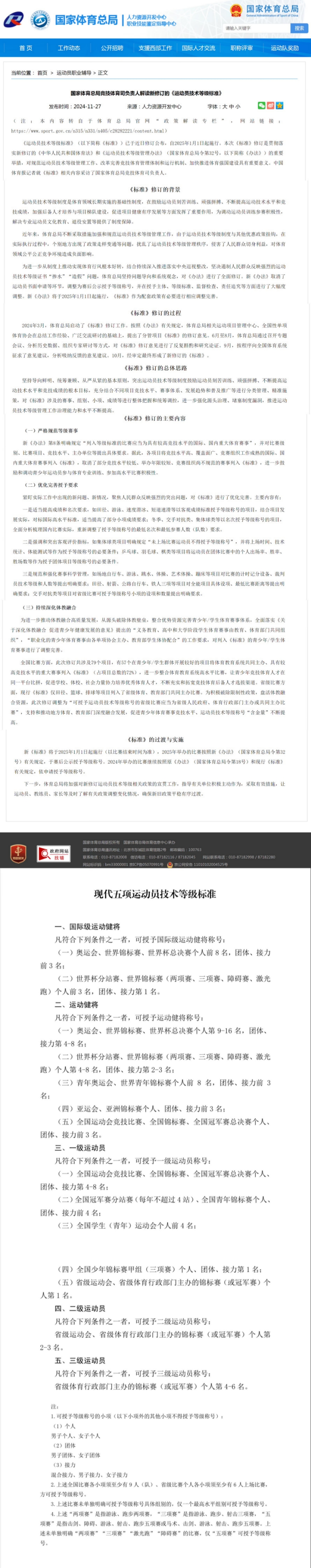 "一图诠释"国家运动员技术等级标准(最新修订版)